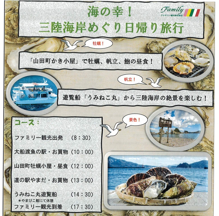 【岩手】三陸山田カキ小屋カキ40分食べ放題と三陸お買い物...